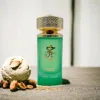 🥜 Notas de Salida: La fragancia se abre con un acorde tentador de pistacho, helado, bergamota, avellana, cardamomo y ron, ofreciendo una entrada dulce y especiada que es tan indulgente como un postre de lujo. 🍦🍸